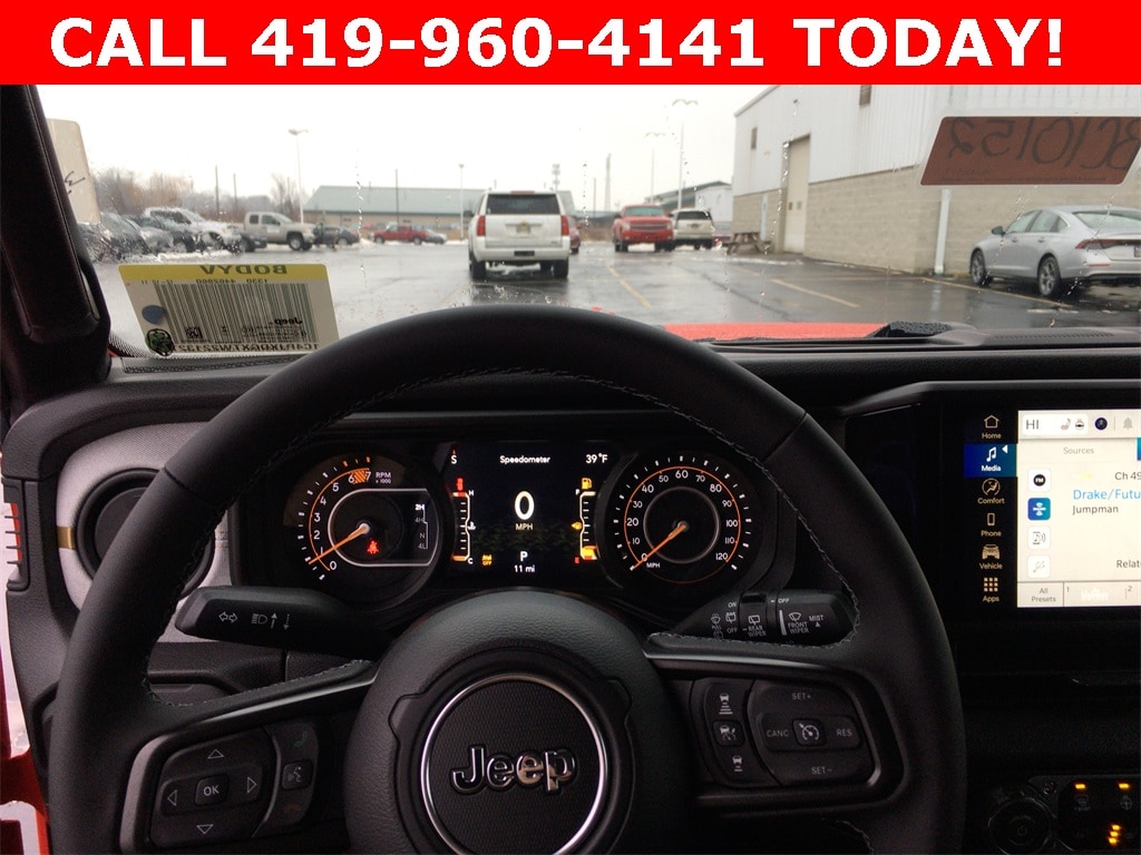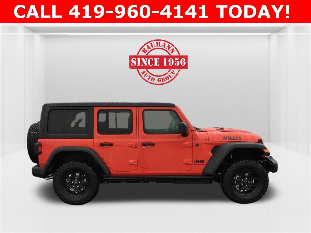 12.3" Touchscreen Display, 2-Door Passive Entry, Front Door Locks, 4-Wheel Disc Brakes, 4-Wheel Drive Swing Gate Decal, 4G LTE Wi-Fi Hot Spot, 7 and 4 Pin Wiring Harness, 8 Speakers, ABS brakes, Advanced Brake Assist, Air Conditioning, Air Conditioning with Auto Temp Control, Air Filtering, AM/FM radio: SiriusXM with 360L, Apple CarPlay, Apple CarPlay/Android Auto, Automatic Headlamps, Aux Battery, Auxiliary Switches, Black 3-Piece Hard Top, Black Grille with Gloss Black Rings, Brake assist, Class II Receiver Hitch, Cluster 7.0" TFT Color Display, Compass, Connectivity - US/Canada, Convenience Group, Conventional Differential Front Axle, Corning Gorilla Glass, Dana M210 Wide HD Tube Front Axle, Dana M220 Wide Rear Axle, Daytime Running Lamps LED Accents, Deep Tint Sunscreen Windows, Delay-off headlights, Driver door bin, Driver vanity mirror, Dual front impact airbags, Dual front side impact airbags, E-Locker Rear Axle, Electronic Stability Control, Emergency/Assistance Call, Enhanced Adaptive Cruise Control, For More Info, Call 800-643-2112, Freedom Panel Storage Bag, Front anti-roll bar, Front Bucket Seats, Front Center Armrest w/Storage, Front fog lights, Front LED Fog Lamps, Front reading lights, Full Speed Forward Collision Warning Plus, Google Android Auto, Heated Front Seats, Heated Steering Wheel, Illuminated entry, Injection Molded Black Rear Bumper, Integrated Center Stack Radio, Integrated roll-over protection, LED Premium Reflector Headlamps, Low tire pressure warning, Mold in Color Bumper with Gloss Black, Molded in Color Rubicon Highline Flare, MOPAR All-Weather Floor Mats, No Soft Top, Non-Lock Fuel Cap Without Discriminator, Normal Duty Suspension, Occupant sensing airbag, Off-Road Plus Mode, Outside temperature display, Overhead airbag, Panic alarm, ParkView Rear Back-Up Camera, Passenger door bin, Passenger vanity mirror, Power Dome Dual Vented Hood, Power Heated Mirrors, Power steering, Power windows, Premium Wrapped Steering Wheel, Quick Order Package 24W Willys, Radio data system, Radio: Uconnect 5 with 12.3" Display, Rear anti-roll bar, Rear reading lights, Rear Window Defroster, Rear Window Wiper/Washer, Remote keyless entry, Security Alarm, SiriusXM Radio Service, SiriusXM with 360L, Speed control, Split folding rear seat, Steel Power Dome Hood Package, Steering wheel mounted audio controls, Stop-Start Dual Battery System, Sun Visors with Illuminated Vanity Mirrors, Tachometer, Telescoping steering wheel, Tilt steering wheel, Traction control, Trip computer, Universal Garage Door Opener, Variably intermittent wipers, Wheels: 17" x 7.5" Black Steel Styled, Wheels: 17" x 7.5" Painted Black, Willy's Suspension, Willys Hood Decal.