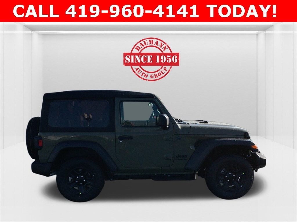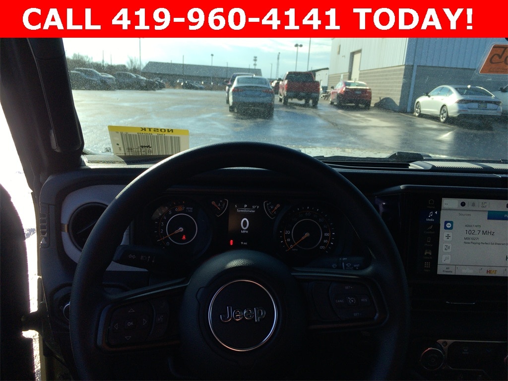 CALL 419- 732 -3148 or 419- 960- 4141, 12.3" Touchscreen Display, 3.45 Overall Top Gear Ratio, 4-Wheel Disc Brakes, 4G LTE Wi-Fi Hot Spot, 8 Speakers, ABS brakes, Air Conditioning, AM/FM radio: SiriusXM with 360L, Apple CarPlay, Apple CarPlay/Android Auto, Aux Battery, Brake assist, Cloth Low-Back Bucket Seats, Compass, Connectivity - US/Canada, Deep Tint Sunscreen Windows, Delay-off headlights, Driver door bin, Driver vanity mirror, Dual front impact airbags, Dual front side impact airbags, Electronic Stability Control, For More Info, Call 800-643-2112, Front anti-roll bar, Front Bucket Seats, Front Center Armrest w/Storage, Front fog lights, Front reading lights, Google Android Auto, Illuminated entry, Integrated Center Stack Radio, Integrated roll-over protection, Low tire pressure warning, MOPAR All-Weather Floor Mats, Mopar Black Fuel Filler Door, Non-Lock Fuel Cap Without Discriminator, Normal Duty Suspension, Occupant sensing airbag, Outside temperature display, Overhead airbag, Panic alarm, ParkView Rear Back-Up Camera, Passenger door bin, Passenger vanity mirror, Power steering, Power windows, Quick Order Package 22B Sport, Radio data system, Radio: Uconnect 5 with 12.3" Display, Rear anti-roll bar, Rear reading lights, Remote keyless entry, SiriusXM Radio Service, SiriusXM with 360L, Soft Top Window Storage Bag, Speed control, Steering wheel mounted audio controls, Stop-Start Dual Battery System, Tachometer, Telescoping steering wheel, Tilt steering wheel, Traction control, Trip computer, Variably intermittent wipers, Wheels: 17" x 7.5" Black Steel Styled.