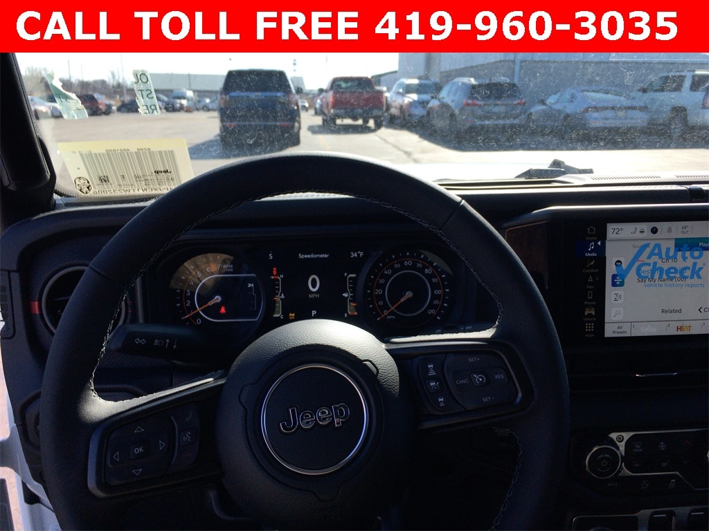 12.3" Touchscreen Display, 4-Wheel Disc Brakes, 4.10 Rear Axle Ratio, 4G LTE Wi-Fi Hot Spot, 8 Speakers, ABS brakes, Air Conditioning, Alloy wheels, Alpine Premium Audio System, AM/FM radio: SiriusXM with 360L, Apple CarPlay, Apple CarPlay/Android Auto, Auto-Dimming Rear-View Mirror, Automatic temperature control, Aux Battery, Auxiliary Switches, Body Color 3-Piece Hard Top, Body Color Rubicon Highline Flare, Brake assist, Class II Receiver Hitch, Cloth Low-Back Bucket Seats, Compass, Connected Travel and Traffic Services, Connectivity - US/Canada, Convenience Group, Delay-off headlights, Driver door bin, Driver vanity mirror, Dual front impact airbags, Dual front side impact airbags, Electronic Stability Control, Emergency communication system: Jeep Connect, For More Info, Call 800-643-2112, Freedom Panel Storage Bag, Front anti-roll bar, Front Bucket Seats, Front Center Armrest w/Storage, Front dual zone A/C, Front fog lights, Front License Plate Bracket, Front reading lights, Fully automatic headlights, Google Android Auto, GPS Navigation, HD Radio, Heated door mirrors, Heated Front Seats, Heated Steering Wheel, Illuminated entry, Integrated Center Stack Radio, Integrated Off-Road Camera, Integrated roll-over protection, Integrated Voice Command with Bluetooth, Low tire pressure warning, MOPAR All-Weather Floor Mats, No Soft Top, Non-Lock Fuel Cap Without Discriminator, Occupant sensing airbag, Outside temperature display, Overhead airbag, Panic alarm, ParkView Rear Back-Up Camera, Passenger door bin, Passenger vanity mirror, Performance Hood, Performance Suspension, Power door mirrors, Power steering, Power windows, Quick Order Package 22R Rubicon, Radio data system, Radio: Uconnect 5 Navigation with 12.3" Display, Radio: Uconnect 5 with 12.3" Display, Rear anti-roll bar, Rear reading lights, Rear Window Defroster, Rear Window Wiper/Washer, Remote keyless entry, Security system, SiriusXM Radio Service, SiriusXM with 360L, Speed control, Steel Performance Hood Package, Steering wheel mounted audio controls, Stop-Start Dual Battery System, Tachometer, Technology Group, Telescoping steering wheel, Tilt steering wheel, Traction control, Trip computer, Universal Garage Door Opener, Variably intermittent wipers, Voltmeter, Wheels: 17" x 7.5" Machined/Painted Black.