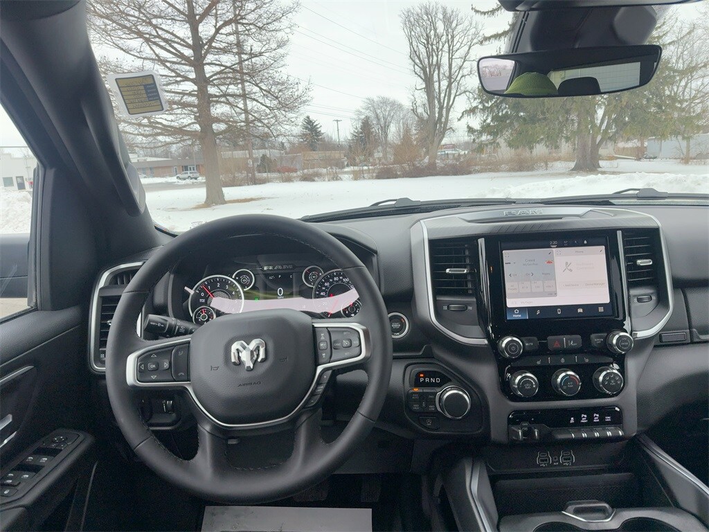 115V Auxiliary Power Outlet, 2nd Row in Floor Storage Bins, 3 Rear Seat Head Restraints, 3.21 Rear Axle Ratio, 4 Way Front Headrests, 4-Wheel Disc Brakes, 400W Inverter, 48V Belt Starter Generator, 4G LTE Wi-Fi Hot Spot, 6 Speakers, ABS brakes, Air Conditioning, Alloy wheels, AM/FM radio, Apple CarPlay, Apple CarPlay/Android Auto, Auto High-beam Headlights, Auto Power-Folding Mirrors, Auto-Dimming Exterior Driver Mirror, Auto-Dimming Rear-View Mirror, Big Horn Level 1 Equipment Group, Black Exterior Mirrors, Black Premium Power Mirrors, Body Color Fender Flares, Brake assist, Bucket Seats, Bumpers: chrome, Center Console Parts Module, Cloth Bucket Seats, Compass, Connectivity - US/Canada, Convex Wide-Angle Exterior Mirror Insert, Delay-off headlights, Deluxe Cloth Bucket Seats, Driver door bin, Dual front impact airbags, Dual front side impact airbags, Electronic Stability Control, Exterior Mirrors Courtesy Lamps, Exterior Mirrors with Heating Element, Exterior Mirrors with Supplemental Signals, Front anti-roll bar, Front Bucket Seats, Front Center Armrest w/Storage, Front fog lights, Front License Plate Bracket, Front reading lights, Front Seat Back Map Pockets, Front wheel independent suspension, Full Length Floor Console, Fully automatic headlights, Global Telematics Box Module, Glove Box Lamp, Google Android Auto, GPS Antenna Input, Heated door mirrors, Heated Front Seats, Heated Steering Wheel, Illuminated entry, Integrated Center Stack Radio, Integrated Voice Command with Bluetooth, Leather Wrapped Steering Wheel, Low tire pressure warning, Manual Adjust 4-Way Driver Seat, Manual Adjust 4-Way Front Passenger Seat, Manual Folding Exterior Mirrors, MOPAR Front and Rear Rubber Floor Mats, MyFlexCare Service Plan, Occupant sensing airbag, Outside temperature display, Overhead airbag, Overhead console, Panic alarm, ParkView Rear Back-Up Camera, Passenger door bin, Passenger vanity mirror, Power 2-Way Driver Lumbar Adjust, Power Adjust 8-Way Driver Seat, Power Adjustable Pedals, Power door mirrors, Power steering, Power windows, Quick Order Package 23Z Big Horn, Radio data system, Radio: Uconnect 5 W with 8.4" Display, RAM Grille Badge - Chrome, Rear 60/40 Folding Seat, Rear anti-roll bar, Rear Center Armrest, Rear Dome with on/Off Switch Lamp, Rear Power Sliding Window, Rear step bumper, Rear Window Defroster, Remote keyless entry, SiriusXM Radio Service, SiriusXM Satellite Radio, Speed control, Steering Wheel Mounted Audio Controls, Sun Visors with Illuminated Vanity Mirrors, Supplier Part Tracking (J-1), Tachometer, Telescoping steering wheel, Tilt steering wheel, Traction control, Trailer Brake Control, Trip computer, Universal Garage Door Opener, USB Host Flip, Variably intermittent wipers, Voltmeter, Wheels: 18" x 8" Cast-Aluminum Painted.