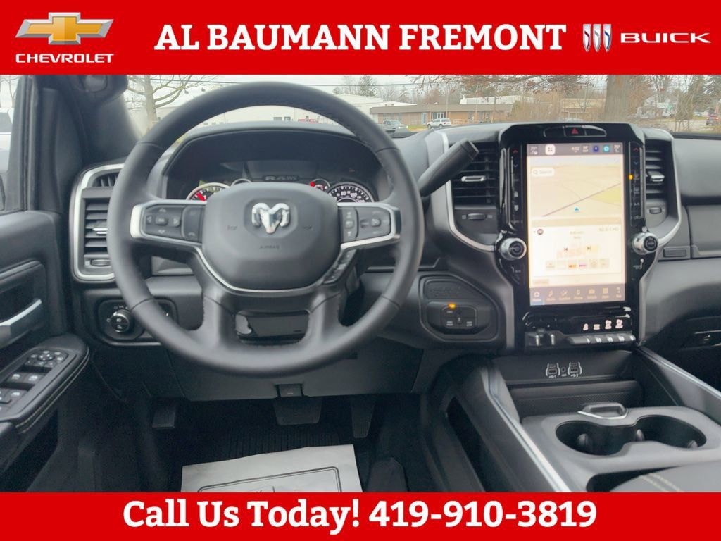 12" Touchscreen Display, 2 Way Rear Headrest Seat, 2nd Row in Floor Storage Bins, 3.73 Axle Ratio, 4 Way Front Headrests, 4-Wheel Disc Brakes, 40/20/40 Split Bench Seat, 4G LTE Wi-Fi Hot Spot, 6 Speakers, 9 Alpine Speakers with Subwoofer, ABS brakes, Air Conditioning, Air Conditioning ATC with Dual Zone Control, Alexa Built-in, Alloy wheels, AM/FM radio: SiriusXM, Anti-Spin Differential Rear Axle, Apple CarPlay, Apple CarPlay/Android Auto, Auto Power-Folding Mirrors, Auto-Dimming Rear-View Mirror, Big Horn Level 1 Plus Equipment Group, Black Exterior Mirrors, Black Exterior Truck Badging, Black Interior Accents, Black Wheel Center Hub, Body Color Grille-Surround, Brake assist, Bumpers: chrome, Center Hub, Clearance Lamps, Cloth 40/20/40 Bench Seat, Compass, Connected Travel and Traffic Services, Connectivity - US/Canada, Delay-off headlights, Disassociated Touchscreen Display, Driver door bin, Dual front impact airbags, Dual front side impact airbags, Dual Glove Boxes, Electronic Stability Control, Emergency Vehicle Alert System (EVAS), Exterior Mirrors Courtesy Lamps, Exterior Mirrors with Heating Element, Exterior Mirrors with Supplemental Signals, Foam Bottle Insert (door Trim Panel), Folding Flat Load Floor Storage, Footwell Courtesy Lamp, For Details, Visit DriveUconnect.com, For More Info, Call 800-643-2112, Forward and Reverse Utility Lights, Front anti-roll bar, Front Armrest with Cupholders, Front Center Armrest w/Storage, Front Center Seat Cushion Storage, Front fog lights, Front License Plate Bracket, Front reading lights, Front Seat Back Map Pockets, Fully automatic headlights, Global Telematics Box Module, Gloss Black Nostrils/Mic Black Grille, Glove Box Lamp, Google Android Auto, GPS Antenna Input, GPS Navigation, HD Radio, Heated door mirrors, Heated Front Seats, Heated Seats and Wheel Group, Heated Steering Wheel, Illuminated entry, Integrated Voice Command with Bluetooth, LED Bed Lighting, Locking Lower Glove Box, Low tire pressure warning, Luxury Steering Wheel, Manual Adjust 4-Way Driver Seat, Manual Adjust 4-Way Front Passenger Seat, Mirror Running Lights, MOPAR Deployable Bed Step, MOPAR Front and Rear Rubber Floor Mats, MOPAR Spray in Bedliner, MyFlexCare Service Plan, Night Edition, Occupant sensing airbag, Off-Road Info Pages, Outside temperature display, Overhead airbag, Overhead console, Painted Flat Wheel-to-Wheel Side Steps, Painted Front Bumper, Painted Rear Bumper, Panic alarm, ParkView Rear Back-Up Camera, Passenger door bin, Passenger vanity mirror, Power 2-Way Driver Lumbar Adjust, Power Adjust 8-Way Driver Seat, Power Adjust Mirrors, Power door mirrors, Power Heated Folding Telescopic Mirrors, Power steering, Power Telescoping Mirrors, Power windows, Power-Adjustable Convex Aux Mirrors, Premium Cloth 40/20/40 Bench Seat, Quick Order Package 2UZ Big Horn, Radio data system, Radio: Uconnect 5 Navigation with 12.0" Display, Radio: Uconnect 5 with 8.4" Display, Rear 60/40 Folding Seat, Rear anti-roll bar, Rear Dome with on/Off Switch Lamp, Rear Folding Seat, Rear seat center armrest, Rear step bumper, Rear window defroster, Remote keyless entry, Remote Start System, Remote USB Port - Charge Only, Security system, Selectable Tire Fill Alert, SiriusXM Radio Service, SiriusXM with 360L, Speed control, Steering Wheel Mounted Audio Controls, Storage Tray, Tachometer, Tilt steering wheel, Traction control, Trailer Tow Pages, Trip computer, Turn signal indicator mirrors, Variably intermittent wipers, Voltmeter, Wheels: 18" x 8.0" Polished Aluminum, Wheels: 20" x 8.0" Black Painted Aluminum.