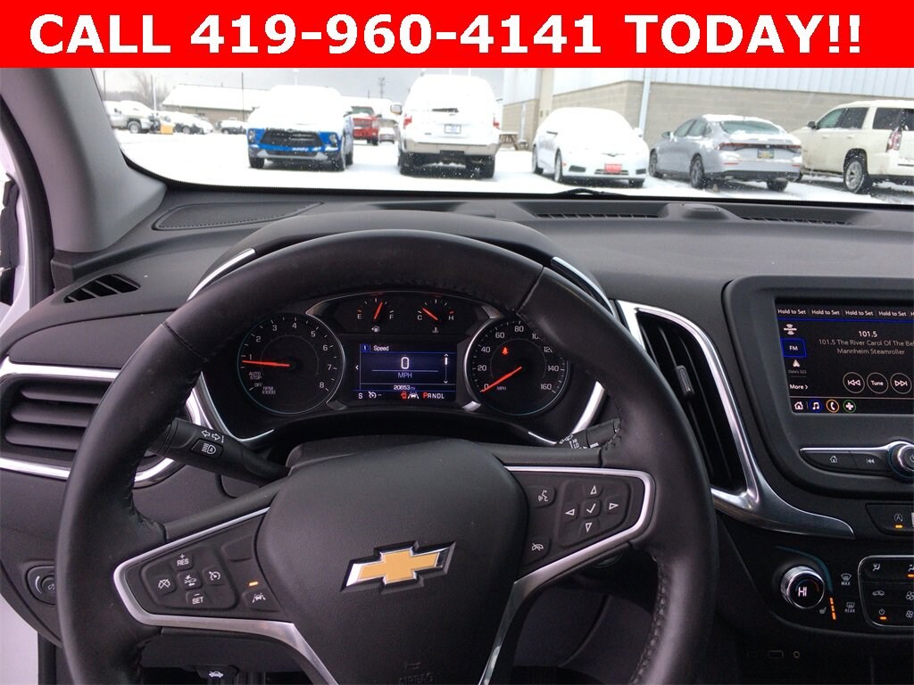 Recent Arrival! Odometer is 6325 miles below market average! CARFAX One-Owner. Clean CARFAX.Summit White 2022 Chevrolet Equinox LT 4D Sport Utility 1.5L DOHC 6-Speed Automatic Electronic with Overdrive FWDLOCALLY OWNED AND TRADED IN, ONE OWNER, CLEAN CARFAX REPORT, Bluetooth, Hands-free, Heated Seats, Keyless Entry, Remote Start, Backup Camera, Navigation, FULL SAFETY INSPECTION CHECK, Cruise Control, Multi-zone Climate Control, Power Locks, Power Windows, Steering Wheel Controls, Parking Sensors, OnStar, Touchscreen controls, Push Button Start, CALL 419- 732 -3148 or 419- 960- 4141, 17 Aluminum Wheels, 18 Aluminum Wheels, 2 Rear USB Charging-Only Ports, 2 USB Ports & Auxiliary Input Jack, 2-Way Power Driver Lumbar Control Seat Adjuster, 3-Spoke Leather-Wrapped Steering Wheel, 3.50 Final Drive Axle Ratio, 4-Wheel Disc Brakes, 6 Speaker Audio System Feature, 6 Speakers, 8-Way Power Driver Seat Adjuster, ABS brakes, Air Conditioning, All-Weather Floor Liners (LPO), Alloy wheels, AM/FM radio: SiriusXM, Auto High-beam Headlights, Bluetooth® For Phone, Brake assist, Bumpers: body-color, Cargo Package (LPO), Chrome Mirror Caps, Chrome Package, Chrome Surround Grille (LPO), Compass, Confidence & Convenience Package, Delay-off headlights, Driver Confidence II Package, Driver Convenience Package, Driver door bin, Driver vanity mirror, Dual front impact airbags, Dual front side impact airbags, Dual Zone Automatic Climate Control, Electronic Stability Control, Emergency communication system: OnStar and Chevrolet connected services capable, Floor Liner Package (LPO), Four wheel independent suspension, Front & Rear Black Bowtie Emblems (LPO), Front & Rear Park Assist, Front anti-roll bar, Front Bucket Seats, Front Center Armrest, Front Passenger 4-Way Manual Seat Adjuster, Front reading lights, Fully automatic headlights, Heated door mirrors, Heated Driver & Front Passenger Seats, Illuminated entry, Integrated Cargo Liner (LPO), Lane Change Alert w/Side Blind Zone Alert, Low tire pressure warning, Not Equipped w/Lane Change & Rear Cross Traffic Alerts, Occupant sensing airbag, Outside temperature display, Overhead airbag, Overhead console, Panic alarm, Passenger door bin, Passenger vanity mirror, Power door mirrors, Power driver seat, Power steering, Power windows, Preferred Equipment Group 1LT, Premium audio system: Chevrolet Infotainment 3, Premium Cloth Seat Trim, Radio data system, Radio: Chevrolet Infotainment 3 System w/AM/FM, Rear anti-roll bar, Rear Bumper Protector, Rear Cross Traffic Alert, Rear Power Liftgate, Rear reading lights, Rear seat center armrest, Rear window defroster, Rear window wiper, Remote keyless entry, Remote Start, Retractable Cargo Shade, Security system, SiriusXM Radio, Speed control, Speed-sensing steering, Split folding rear seat, Spoiler, Steering wheel mounted audio controls, Tachometer, Telescoping steering wheel, Tilt steering wheel, Traction control, Trip computer, Variably intermittent wipers, Vertical Cargo Net (LPO), Wireless Apple CarPlay/Wireless Android Auto.