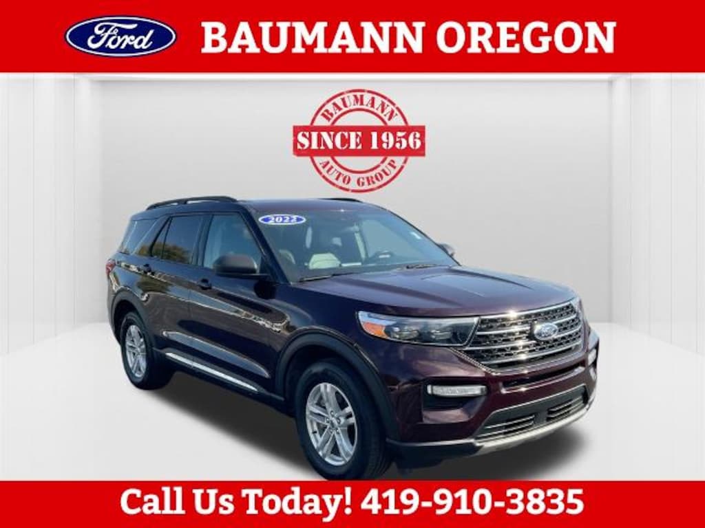 CARFAX One-Owner. Clean CARFAX. Jewel Red Metallic Tinted Clearcoat 2022 Ford Explorer XLT 2.3L EcoBoost I-4 4D Sport Utility 10-Speed Automatic 4WD We are open and ready to serve you! Shop safely and conveniently from the comfort of your home. Contact us today to schedule your home delivery ! Baumann Ford Oregon Toledo Ohio Perrysburg Bowling Green Rossford Curtice Oak Harbor Woodville Monroe Michigan Temperance Erie Repair Facility Body Shop Collision Center Parts Service New Used Leasing Low Payment Low Payments Ford Motorcars Automobile Auto Cars Trucks SUV Sales. ONE OWNER, AUTO CHECK NO ACCIDENTS, BLUETOOTH/HANDS FREE CELL PHONE, REAR BACK UP CAMERA, LOCAL TRADE, NON-SMOKER, FULLY DETAILED, REMAINDER OF FACTORY WARRANTY AVAILABLE, FRESH OIL CHANGE, 4WD, 1st Row Heated Seats, Acoustic-Laminated Front Side Windows, ActiveX Captain's Chairs, Equipment Group 202A, Heated Steering Wheel, LED Fog Lamps, Remote Start System, SecuriCode Keyless Entry Keypad, Twin Panel Moonroof, 3.58 Non-Limited-Slip Rear Axle Ratio, 3rd row seats: bench, 4-Wheel Disc Brakes, 4G LTE Wi-Fi Hotspot Removal Credit, 6 Speakers, ABS brakes, Air Conditioning, Alloy wheels, AM/FM radio: SiriusXM, AM/FM Stereo, Auto High-beam Headlights, Auto Start-Stop Removal, Automatic temperature control, Brake assist, Bumpers: body-color, Compass, Delay-off headlights, Driver door bin, Driver vanity mirror, Dual front impact airbags, Dual front side impact airbags, Electronic Stability Control, Emergency communication system: SYNC 3 911 Assist, Exterior Parking Camera Rear, FordPass Connect, Four wheel independent suspension, Front & Second Row Floor Liners (16B), Front anti-roll bar, Front Bucket Seats, Front Center Armrest, Front dual zone A/C, Front reading lights, Fully automatic headlights, Heated door mirrors, Heated front seats, Illuminated entry, Knee airbag, Leather steering wheel, Low tire pressure warning, Occupant sensing airbag, Outside temperature display, Overhead airbag, Overhead console, Panic alarm, Passenger door bin, Passenger vanity mirror, Power door mirrors, Power driver seat, Power Liftgate, Power passenger seat, Power steering, Power windows, Rear air conditioning, Rear anti-roll bar, Rear reading lights, Rear window defroster, Rear window wiper, Remote keyless entry, Roof rack: rails only, Security system, Speed control, Speed-sensing steering, Speed-Sensitive Wipers, Split folding rear seat, Spoiler, Steering wheel mounted audio controls, SYNC 3 Communications & Entertainment System, SYNC 3/Apple CarPlay/Android