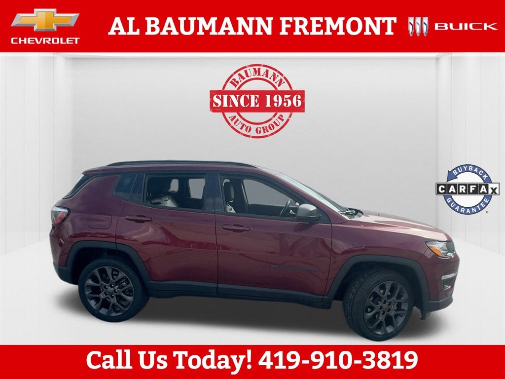 Odometer is 26636 miles below market average! Clean CARFAX.Velvet Red Pearlcoat 2021 Jeep Compass 80th Special Edition 4WD 4D Sport Utility 2.4L I4 9-Speed 948TE Automatic 4WDONLY TWO OWNERS.Car shopping is sometimes inconvenient and stressful, and we want to take the hassle out of this all-too-common experience. If youâre interested in more convenience, less frustration and a process that works efficiently to meet your needs as a customer. Al BAUMANN AUTO GROUP. The Best Price Up Front Cash Offers For Any Trade-In Multiple Financing Quotes In Minutes A Team Of Dedicated Salespeople.CALL,419-332-8236 or {1-866-330-3601}, 4WD, Jeep 80th Anniversary Edition, Navigation System, Quick Order Package 2GP, 3.73 Axle Ratio, 4-Wheel Disc Brakes, 6 Speakers, 80th Edition Leather Seats, ABS brakes, Air Conditioning, Alloy wheels, AM/FM radio: SiriusXM, Anti-whiplash front head restraints, Apple CarPlay/Android Auto, Auto High-beam Headlights, Auto-dimming Rear-View mirror, Automatic temperature control, Brake assist, Bumpers: body-color, Compass, Delay-off headlights, Driver door bin, Driver vanity mirror, Dual front impact airbags, Dual front side impact airbags, Electronic Stability Control, Emergency communication system: SiriusXM Guardian, Four wheel independent suspension, Front anti-roll bar, Front Bucket Seats, Front Center Armrest w/Storage, Front dual zone A/C, Front fog lights, Front License Plate Bracket, Front reading lights, Fully automatic headlights, Heated door mirrors, Illuminated entry, Knee airbag, Low tire pressure warning, Occupant sensing airbag, Outside temperature display, Overhead airbag, Overhead console, Panic alarm, ParkView Rear Back-Up Camera, Passenger door bin, Passenger vanity mirror, Power door mirrors, Power driver seat, Power steering, Power windows, Radio: Uconnect 4C Nav w/8.4 Display, Rear anti-roll bar, Rear seat center armrest, Rear window defroster, Rear window wiper, Remote keyless entry, Roof rack: rails only, Speed control, Split folding rear seat, Spoiler, Steering wheel mounted audio controls, Tachometer, Telescoping steering wheel, Tilt steering wheel, Traction control, Trip computer, Variably intermittent wipers, Wheels: 19 x 7.5 Satin Granite Aluminum, 4WD, Jeep 80th Anniversary Edition, Navigation System, Quick Order Package 2GP.