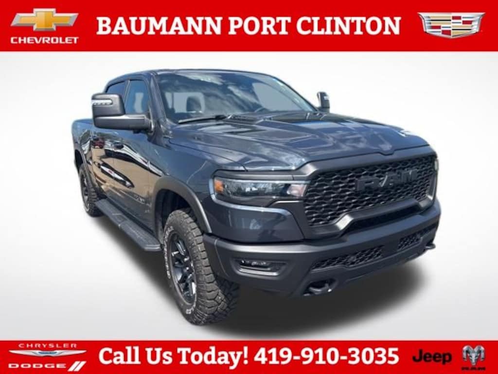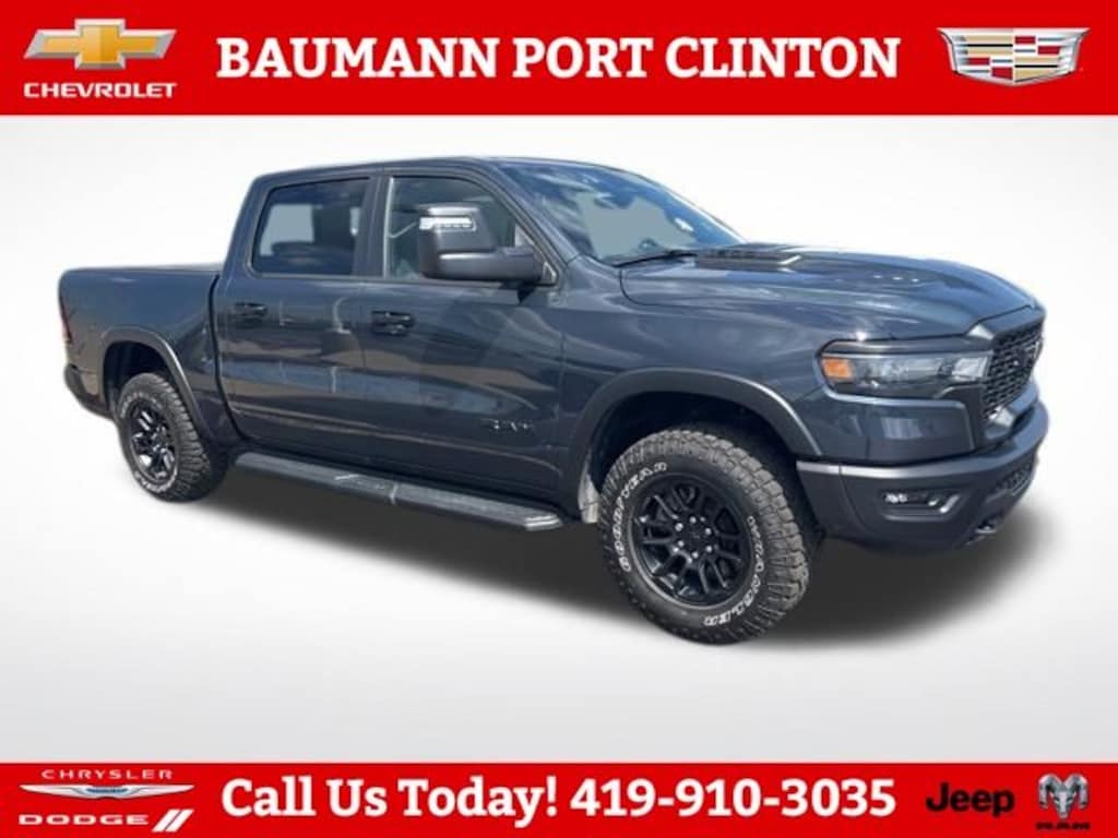 CALL 419- 732 -3148 or 419- 960- 4141, 10 Speakers, 115V Auxiliary Rear Power Outlet, 12-Way/1-Way Trailer Connector, 2-Door Passive Entry, Front Door Locks, 3.92 Rear Axle Ratio, 33 Gallon Fuel Tank, 4 Way Front Headrests, 4-Wheel Disc Brakes, 4G LTE Wi-Fi Hot Spot, ABS brakes, Accent Color Door Handles, Accent Color Premium Power Mirrors, Accent Color Tailgate Handle, Air Conditioning, Alloy wheels, AM/FM radio: SiriusXM with 360L, Apple CarPlay, Apple CarPlay/Android Auto, Auto High-beam Headlights, Auto Power-Folding Mirrors, Auto-Dimming Exterior Driver Mirror, Auto-Dimming Exterior Passenger Mirror, Auto-dimming Rear-View mirror, Automatic temperature control, Bed Utility Group, Black Painted Exterior Mirrors Caps, Brake assist, Bucket Seats, Cloth/Vinyl Bucket Seats, Compass, Connected Travel & Traffic Services, Connectivity - US/Canada, Convex Wide-Angle Exterior Mirror Insert, Delay-off headlights, Dome Dual LED Reading Lamp, Driver door bin, Driver Seat Memory, Driver vanity mirror, Dual front impact airbags, Dual front side impact airbags, Dual Wireless Charging Pad, Dual-Pane Panoramic Sunroof, Electronic Stability Control, Exterior 115V AC Outlet, Exterior Mirrors Approach Lamps, Exterior Mirrors Courtesy Lamps, Exterior Mirrors w/Heating Element, Exterior Mirrors w/Memory, Exterior Mirrors w/Supplemental Signals, Forward & Reverse Utility Lights, Front anti-roll bar, Front Bucket Seats, Front Center Armrest w/Storage, Front dual zone A/C, Front fog lights, Front Passenger Interactive Display, Front reading lights, Front Seat Back Map Pockets, Front wheel independent suspension, Full Length Upgraded Floor Console, Fully automatic headlights, Garage door transmitter, Google Android Auto, GPS Antenna Input, GPS Navigation, harman/kardon 19 Speaker Premium Sound, HD Radio, Heads-Up Display, Heated door mirrors, Heated front seats, Heated Second Row Seats, Heated steering wheel, Illuminated entry, Integrated Voice Command w/Bluetooth, Leather steering wheel, LED CHMSL Lamp, Low tire pressure warning, Manual Folding Exterior Mirrors, Manual Telescoping Mirrors, Manufacturer's Statement of Origin, Media Hub w/2 Charge Only USBs, Mirror Clearance/Running Lights, MOPAR 4 Adjustable Cargo Tie-Down Hooks, Mopar Black Tubular Side Steps, MOPAR Spray In Bedliner, Navigation System, Occupant sensing airbag, Off-Road Information Pages, Outside temperature display, Overhead airbag, Overhead console, Panic alarm, ParkView Rear Back-Up Camera, Passenger door bin, Passenger vanity mirror, Power Adjust 8-Way Driver Seat, Power Adjust 8-Way Front Passenger Seat, Power Adjustable Pedals w/Memory, Power door mirrors, Power driver seat, Power steering, Power Tailgate, Power Telescoping Mirrors, Power windows, Power-Adjustable Convex Aux Mirrors, Proximity Approach/Departure Lamps, Quick Order Package 21W Rebel, Radio data system, Radio: Uconnect 5 Nav w/12.0" Display, Radio: Uconnect 5 Nav w/14.4" Display, Radio/Driver Seat/Mirrors/Pedals Memory, Rain Sensitive Windshield Wipers, Rear 60/40 Folding Seat, Rear anti-roll bar, Rear seat center armrest, Rear step bumper, Rear Window Defroster, Rebel Level 2 Equipment Group, Remote keyless entry, Security Alarm, SiriusXM w/360L, Smartphone As A Key Capable, Speed control, Split folding rear seat, Steering wheel mounted audio controls, Tachometer, Technology Group, Telescoping steering wheel, Tilt steering wheel, Traction control, Trailer Brake Control, Trailer Light Check, Trailer Reverse Steering Control, Trailer Tire Pressure Monitoring System, Trailer Tow Group, Trailer Tow Mirrors, Tri-Fold Tonneau Cover, Trip computer, USB Host Flip, Variably intermittent wipers, Voltmeter, Wheels: 18" x 8.0" Painted Mid-Gloss Black.